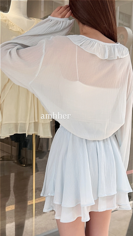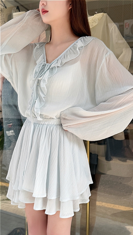 透膚綁帶荷葉套裝